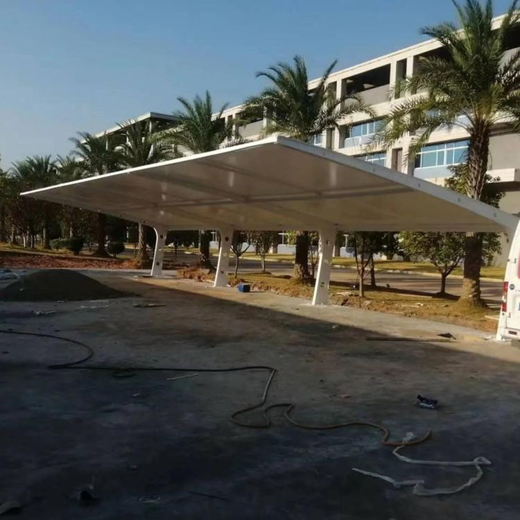 随着城市化进程的不断加快,停车问题越来越成为城市管理中的一大难题。在众多解决方案中,眉县的7字型膜结构停车棚凭借其独特的设计和优越的性能,逐渐受到广泛关注。这种停车棚不仅在美观上颇具现代感,还在功能性、耐用性和环保性等多方面表现出色,是当下城市停车设施的理想选择。 一、7字型膜结构停车棚的设计理念7字型膜结构停车棚的造型如其名,呈现出一种简洁而富有流动感的设计,以“7”字形